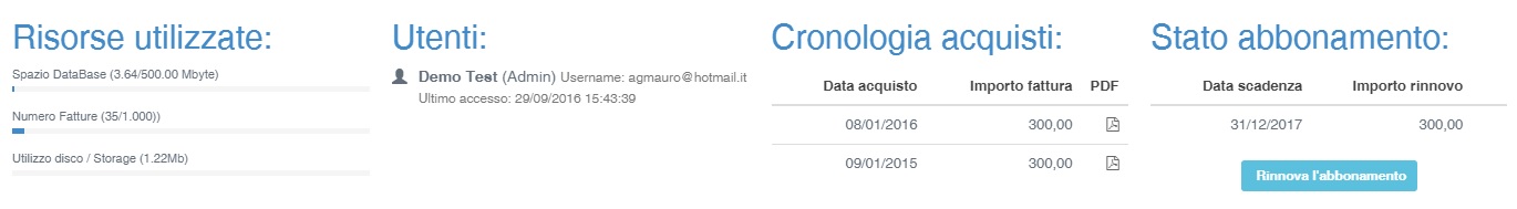 Se mancano meno di 60 giorni alla scadenza del vostro abbonamento, nella schermata relativa alla "Licenza d'utilizzo" (vedi guida Dove controllare lo stato del mio abbonamento) è attivo il pulsante "Rinnova abbonamento"