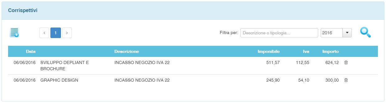 Terminato l'inserimento dei corrispettivi potrete visualizzarne la lista completa nella pagina principale della sezione