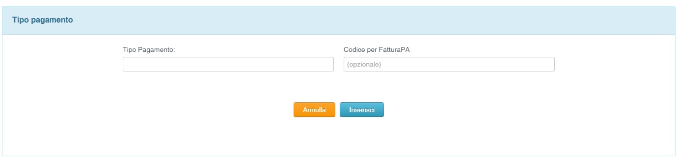 Per procedere con l'inserimento di un nuovo codice di pagamento cliccare sul pulsante "Crea nuovo"
