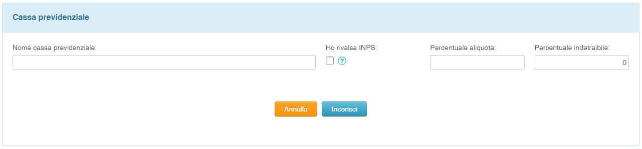Per procedere con l'inserimento di una nuova cassa previdenziale cliccare sul pulsante "Crea nuova ritenuta"