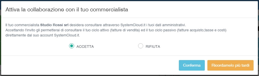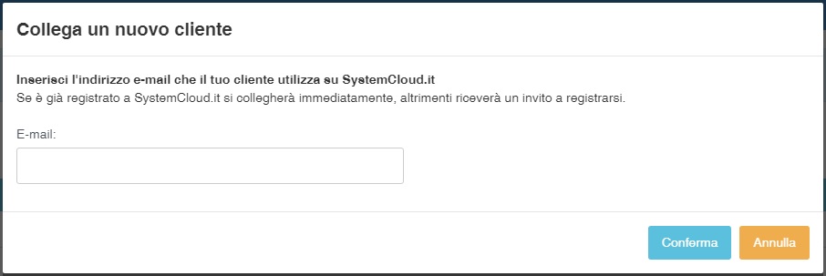 Se quest'ultimo è già registrato sul portale SystemCloud.it riceverà un avviso di conferma di condivisione dei dati