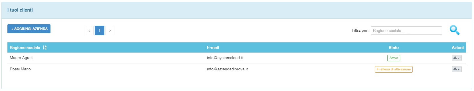 Cliccare sul pulsante in alto a sinistra "+ AGGIUNGI AZIENDA"