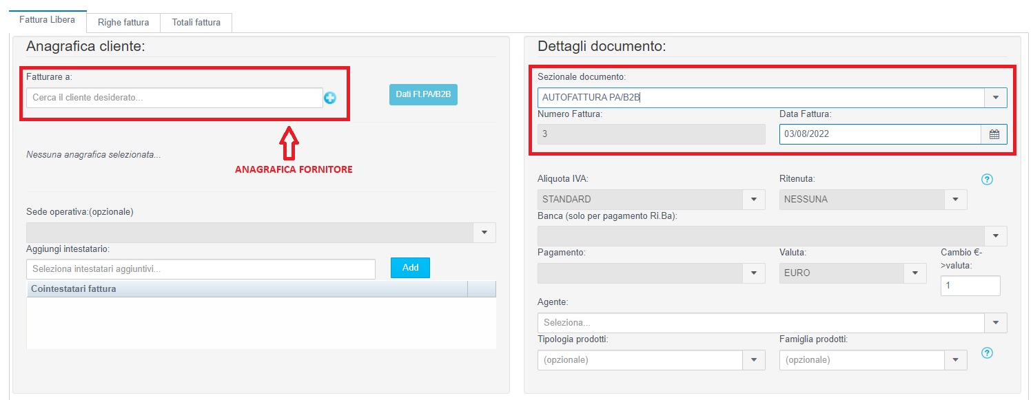 L'unica differenza consiste nel selezionare la corretta tipologia di documento (FATTURA PA) e specificare il corretto codice per il recapito della fattura attraverso lo SDI: