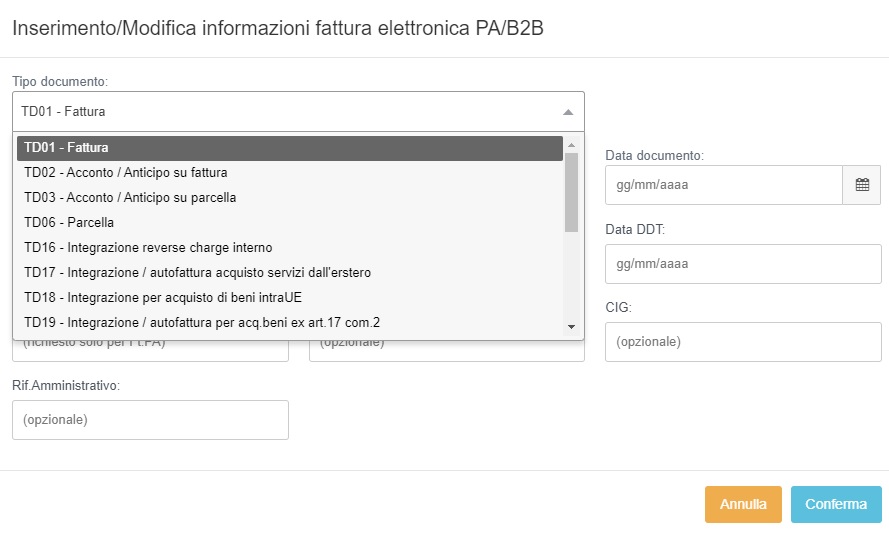 Mentre con le vecchie specifiche il campo Tipo documento assumeva essenzialmente, per quanto riguarda le fatture il valore "fisso" TD01 - Fattura,