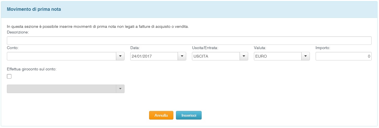 Nella parte superiore troviamo l'icona per inserire un nuovo movimento manuale:
