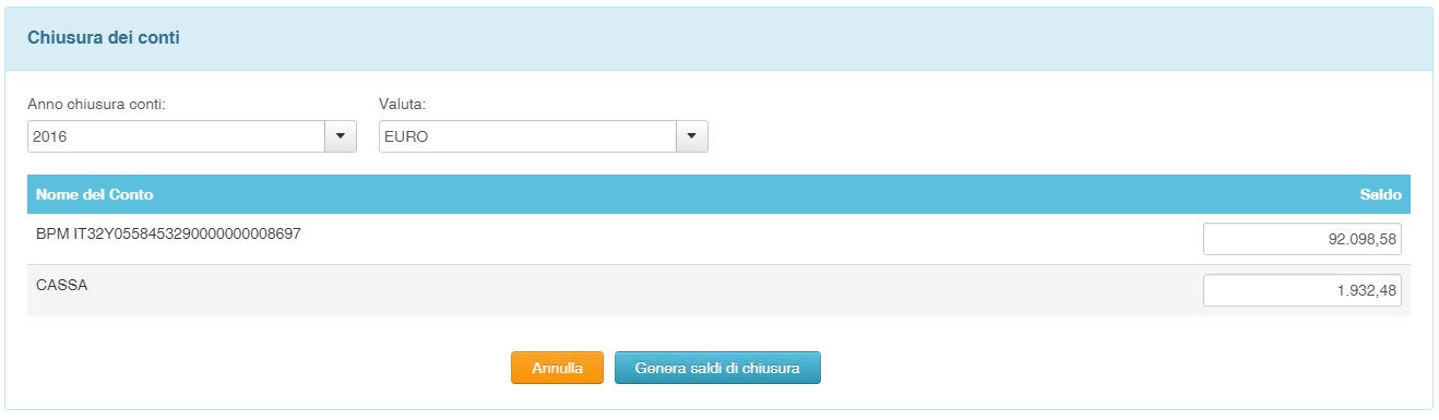 potrete modificare o meno le cifre proposte e confermarle attraverso il pulsante "Genera saldi di chiusura"