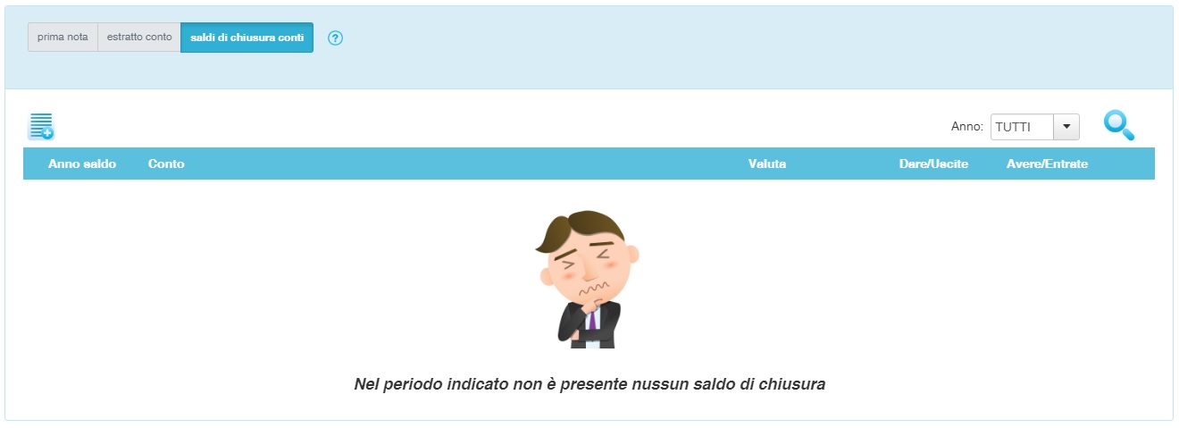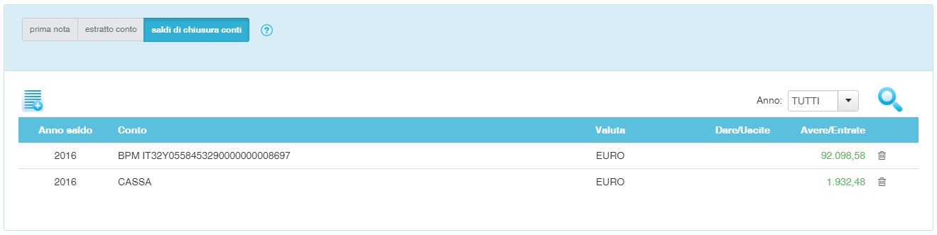 Nella parte superiore troviamo l'icona per generare un nuovo saldo di chiusura: