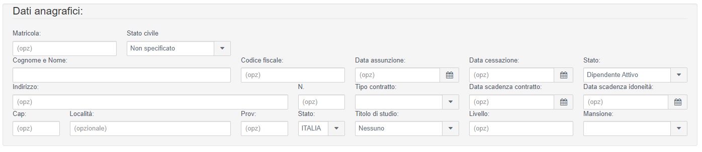 Il modulo estende i dati presenti nell'anagrafica dipendenti di base, permettendo di inserire le informazioni necessarie ad una gestione più puntuale: