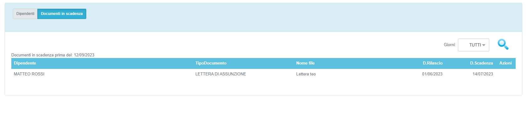 Dettaglio che è comunque sempre visibile nella schermata dei dipendenti attraverso il pulsante Documenti in scadenza