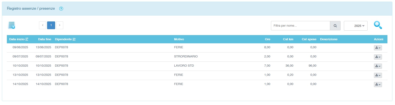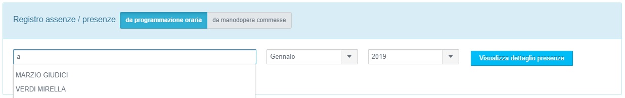 selezionando dal menù funzioni la voce Risorse Umane → Dettaglio presenze