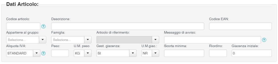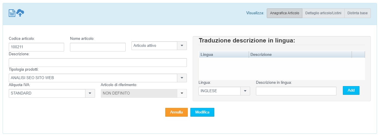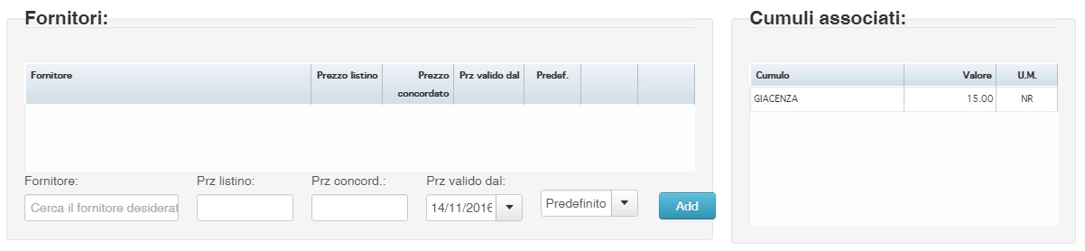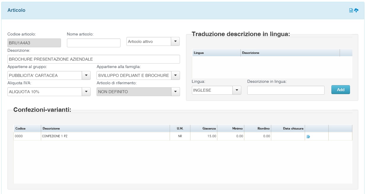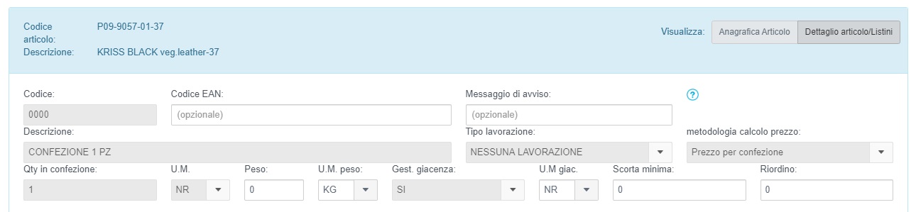 presente nella schermata di modifica confezione / variante se il modulo confezioni articolo è attivo o nella schermata di modifica articolo se non è attivato.