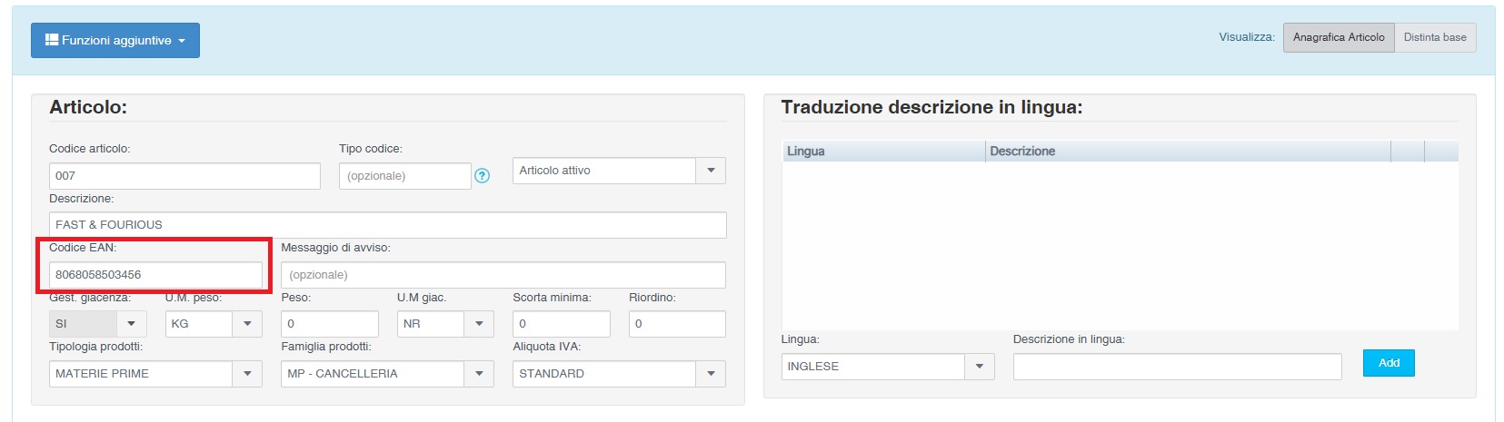 Il sistema permette di automatizzare l'inseriemnto delgli articoli nei movimenti manuali tramite l'ausilio di un lettore BarCode dei codici EAN.