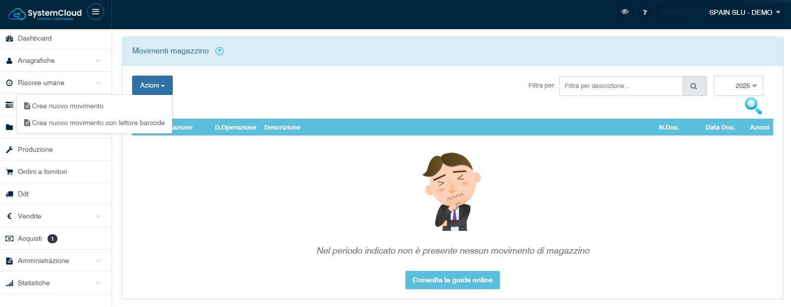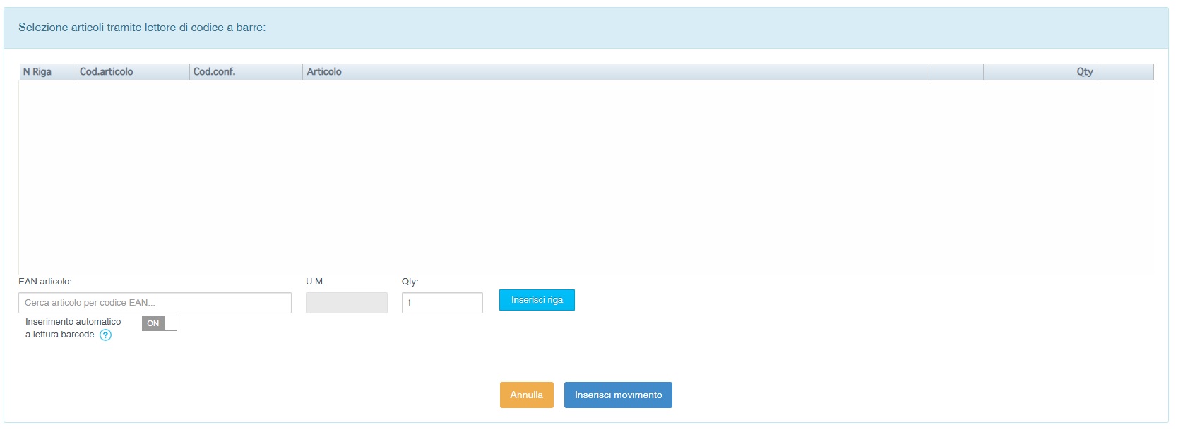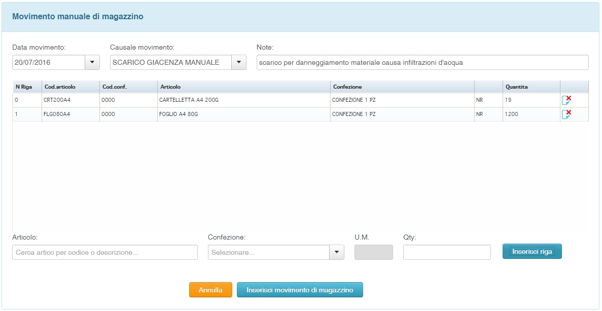 Il sistema prevede due modalità per movimentare la giacenza degli articoli: