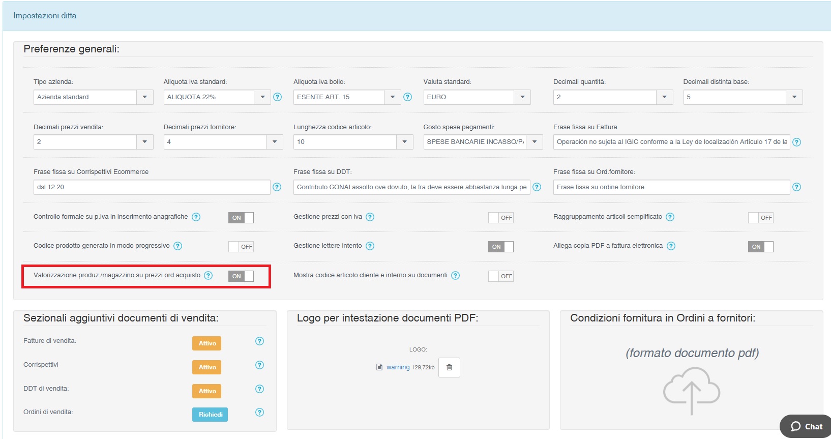 Impostazioni -> Impostazioni ditta: