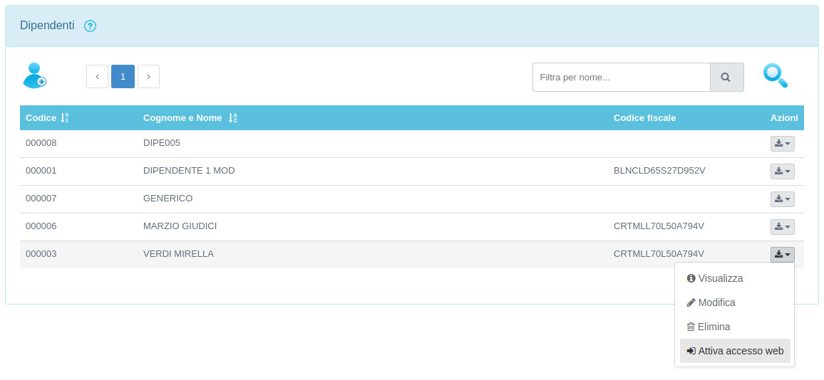 Ad anagrafica inserita selezionare il menù Azioni e selezionando la voce Attiva accesso web