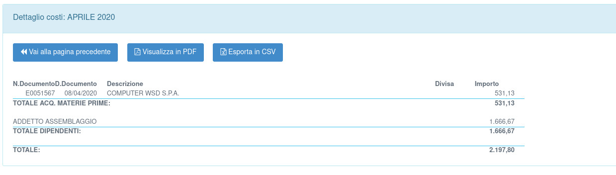 La maggior parte dei report mostrati di seguito ha la possibilità di essere esportata in Excel attraverso il pulsante "Esporta CSV"