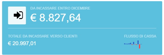 Per accedere al grafico è sufficiente cliccare sul grafico presente nella Dashboard nell'area Incassi clienti: