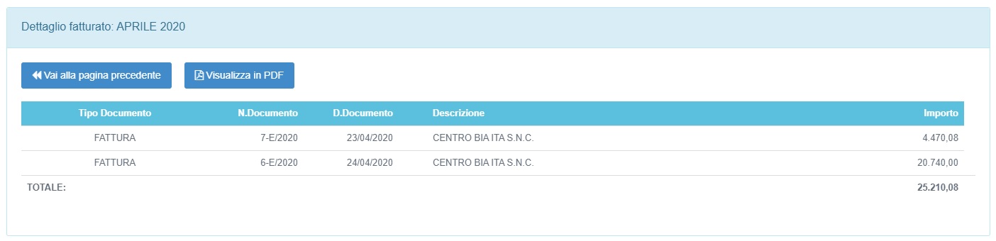 Cliccando sul valore mensile è possibile consultare il dettaglio dei documenti con riemmisione nel periodo: