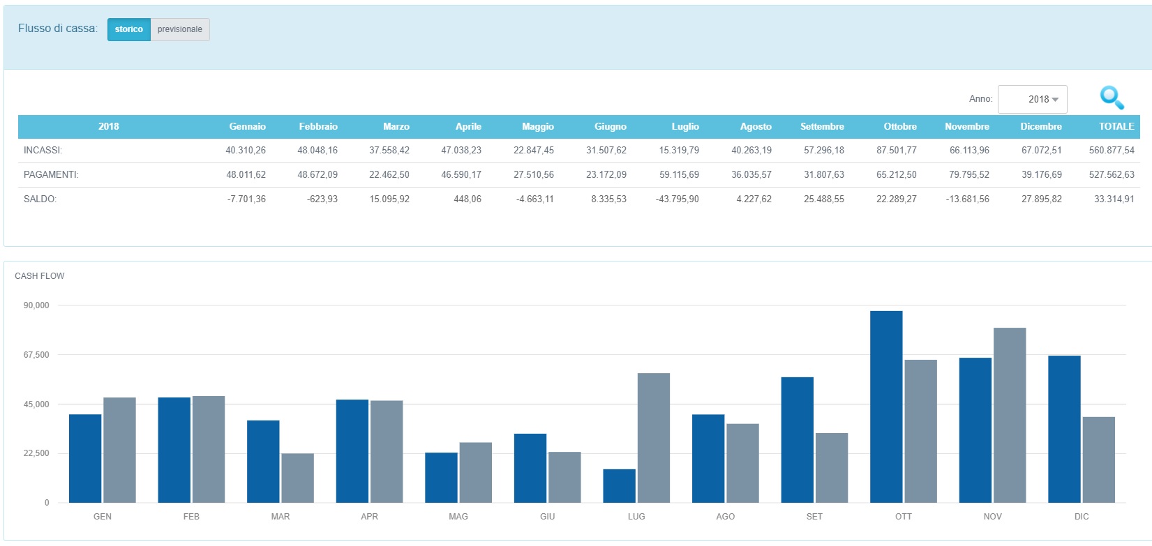 Il sistema analizza le registrazioni di incasso e di pagamento del ciclo attivo e passivo e restituisce