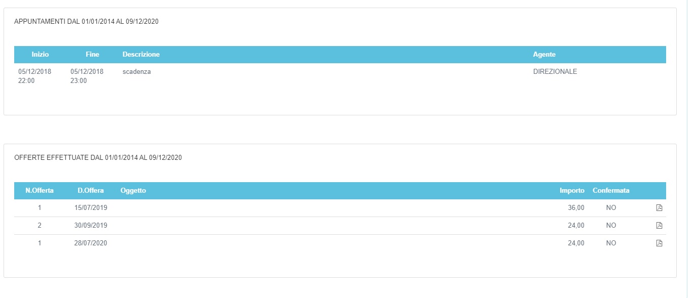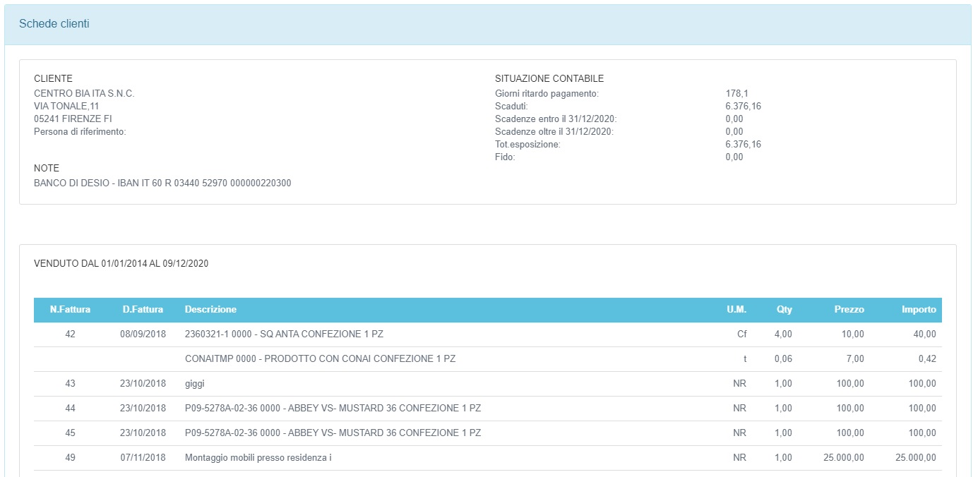Per ogni cliente possiamo visualizzare un'analisi dettagliata attraverso il pulsante Analizza presente nel menù Azioni riferito al cliente