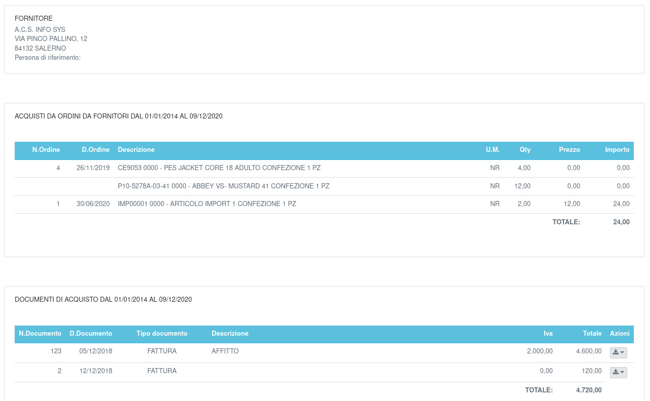 La funzione mostra per ogni fornitore: